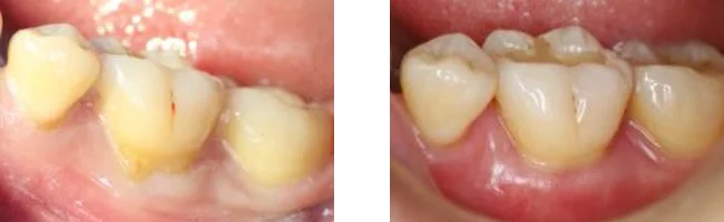 The gum can be shrunk due to aggressive brushing or clenching/grinding that cause root exposure. At certain condition, gum grafting can be performed to re-cover the receding gums on the exposed roots to achieve beauty and health.